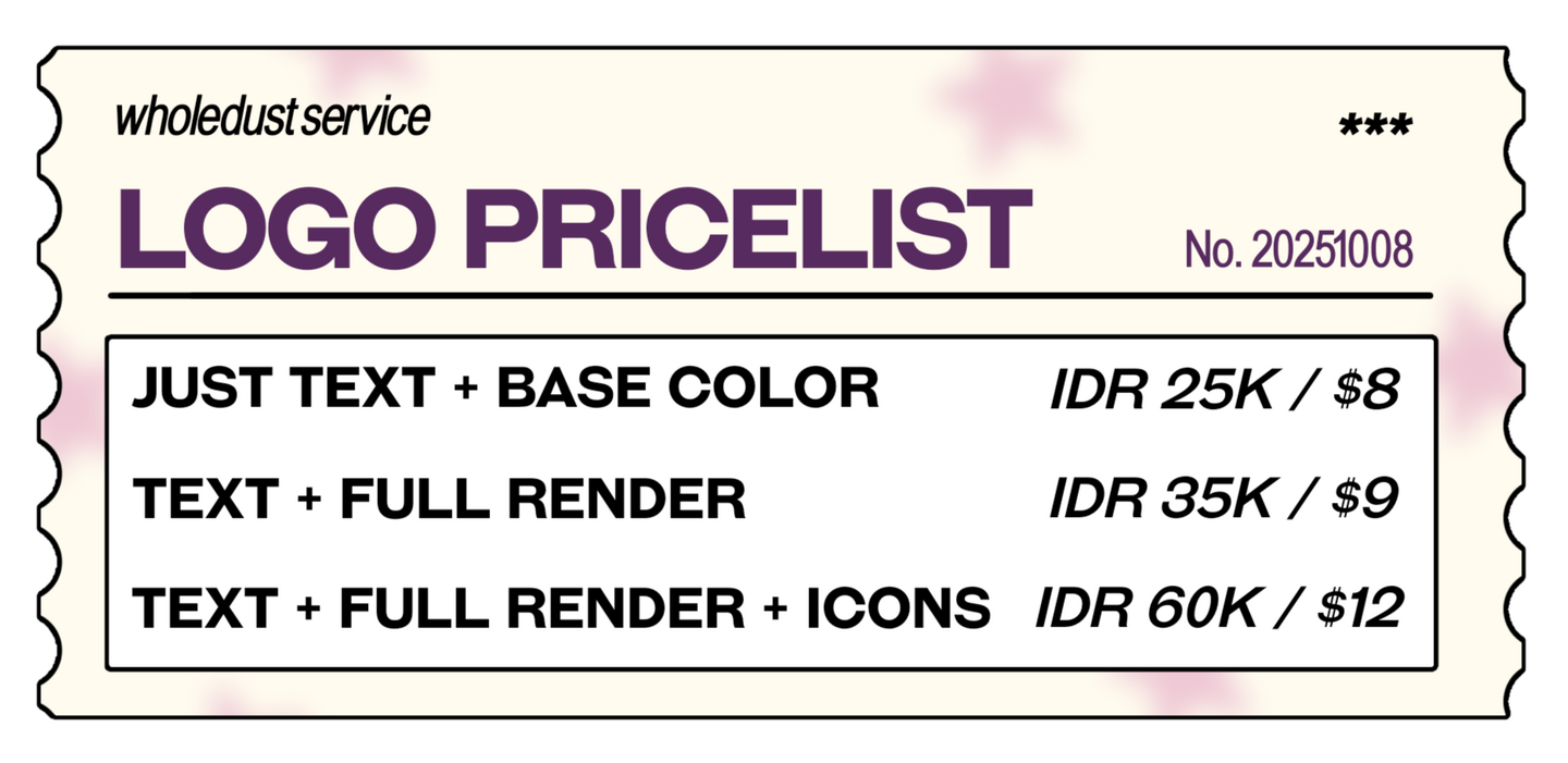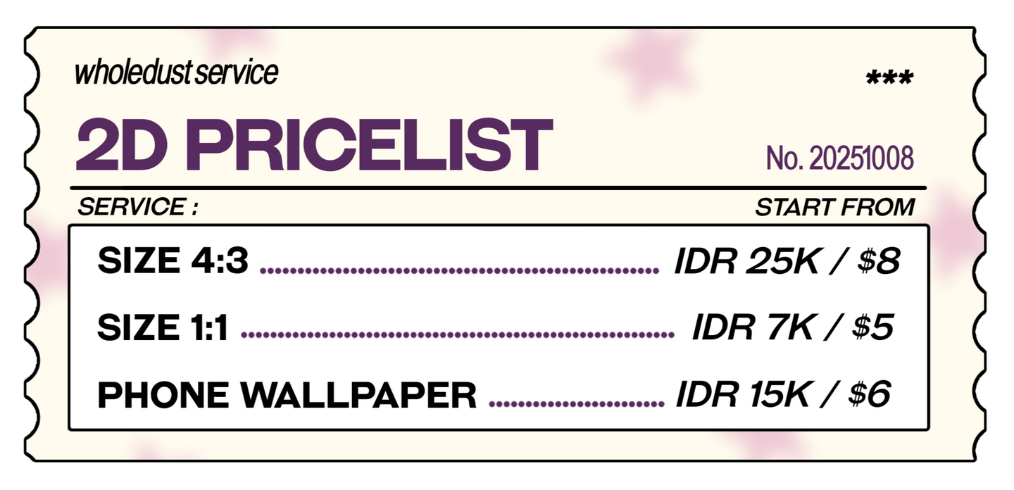 If you place a rush order near closing time (around 7 PM), it will still be prioritized but with an extra fee of $2 / Rp3K–7K, and will be finished within about 1—4 hours. (Doesn't apply to logo)